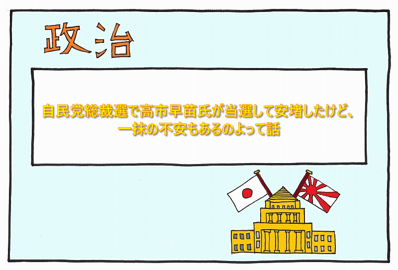 そのぐらい不安に包まれた総裁選だったため、高市早苗氏の当選には、私も少し胸を撫でおろしました。